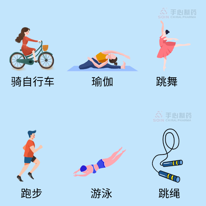 高等强度有氧运动:跑步、游泳、跳绳、健美操。