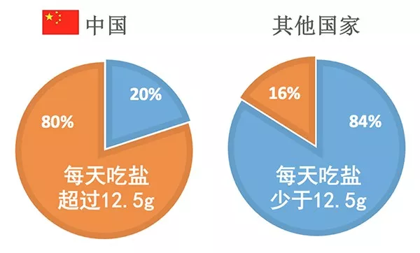 中国居民膳食指南建议,每天盐摄入量不超过6g,每天吃盐12.5g,意味着超过推荐量的2倍还多!这也是我国成为高血压大国的一个主要原因。